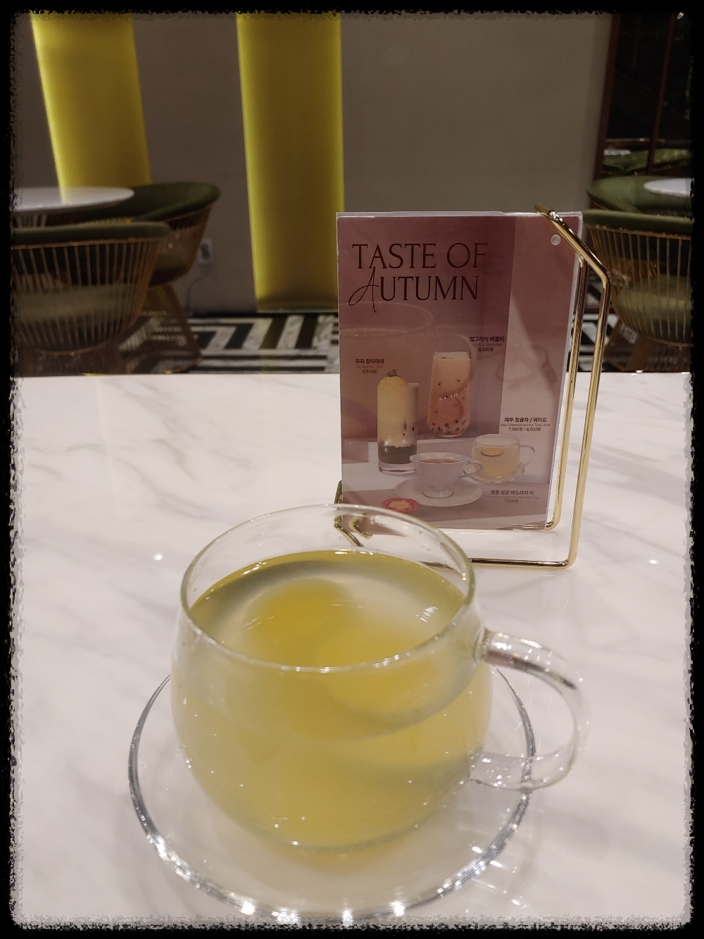 영화보기 전 6층 씨네드쉐프에서 '제주 청 귤차' 따듯이 마시기