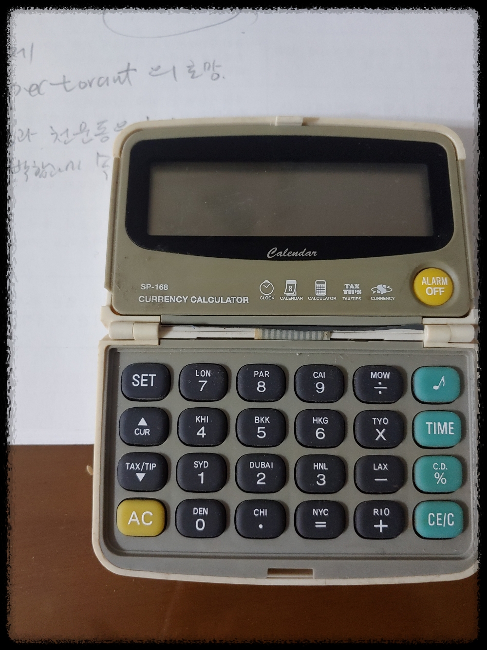 2005년 4월 동대문시장에서 유럽여행시 구입한 '계산기 겸 알람시계 겸 시계'/ 21년만에 고장이 났는지 삐~~~소리가 나고 화면이 안 보이게 되어, 하이마트 전자제품 수거함에 넣어야겠다// 유럽여행 계기로 엄니와 부천 순천향 대학병원 호흡기내과 방문하기도 했었다