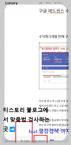 티스토리 블로그 글쓰기 작업창에도 맞춤법 기능이 있다