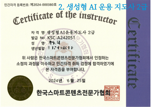 1. 전자상거래-수출-마스터-자격증-2급/ 2. 생성형-AI-운용-지도사-2급 2. 생성형 AI 운용 지도사 2급 : AI 관련 필기시험 25문항과 실습 반영